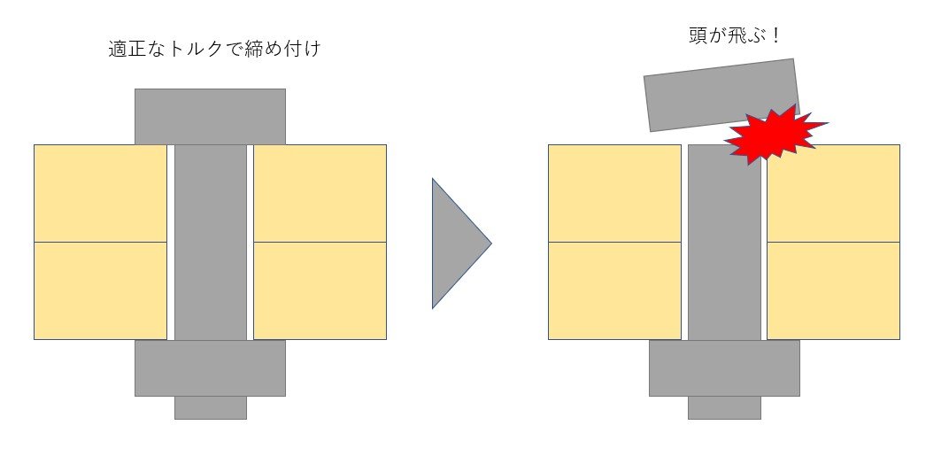 遅れ破壊とは一定の引張荷重を受けているねじが、ある一定の時間になったときに前兆なく突然破断する現象のことを言います。つまり、締め付けた時は何も問題なかったのに数時間あるいは数日経った時に突然ねじの頭が鉄砲玉のように飛んで破壊されてしまう現象です。以前は、水素脆性というものが知られておらず12.9ボルトにメッキし、そのボルトで機械を作って納品したら現地や納品中のトラックの中で頭が飛んで機械がバラバラになるという笑えないこともしばしばあったそうです。
