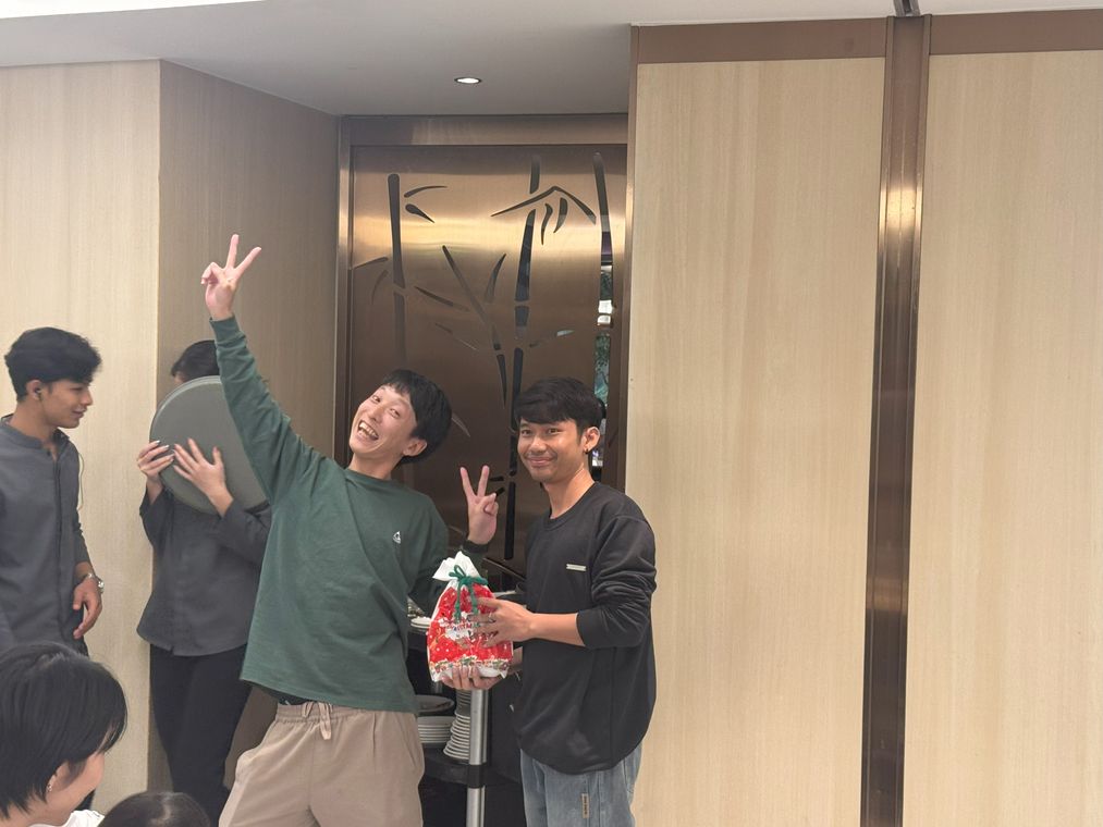 タイ→日本→タイ→というようにくじを引きながらプレゼント交換をしました!