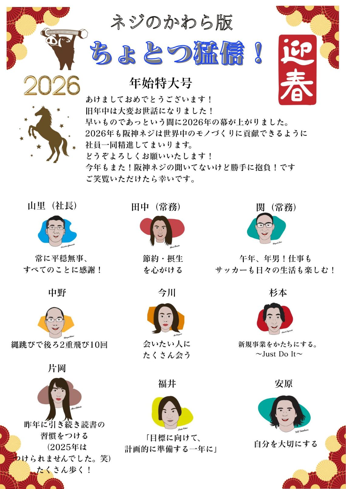 2026年の阪神ネジも様々な挑戦をし、世界のモノづくりに貢献すべく従業員一同精進してまいります